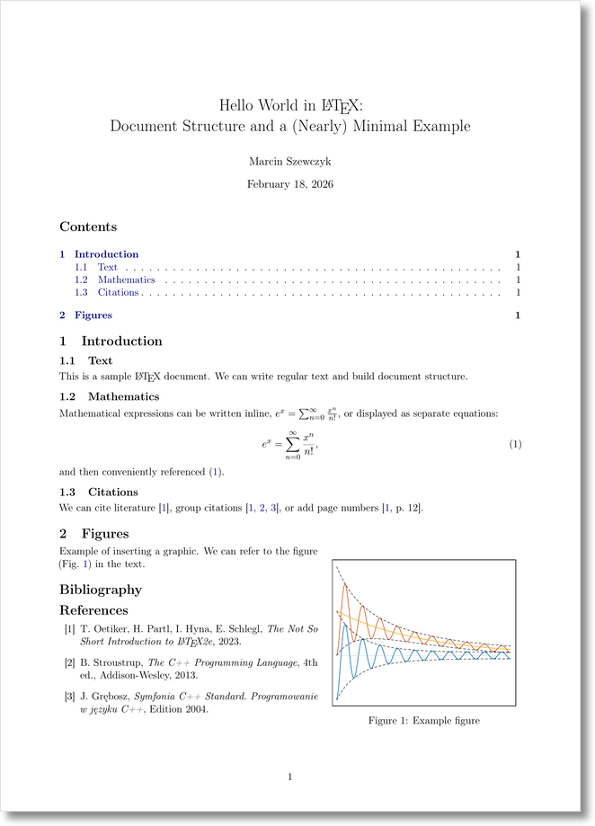 Rys. 1. Preview of the generated PDF hello-practical-en.pdf.
