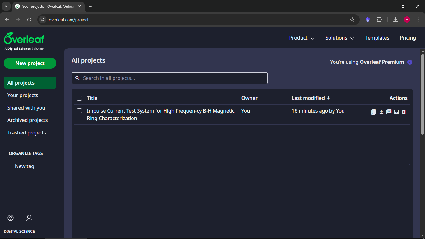 Fig. 1. Overleaf main dashboard – list of user projects.