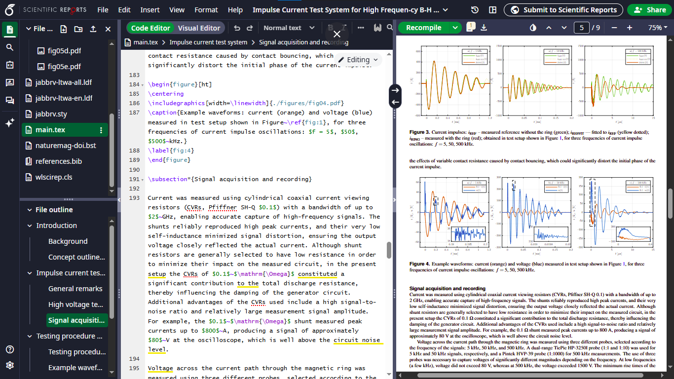Fig. 2. Overleaf editor – LaTeX source code and preview of the compiled PDF document.