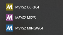 Fig. 1. Result of MSYS2 installation: MSYS, MINGW64, UCRT64.